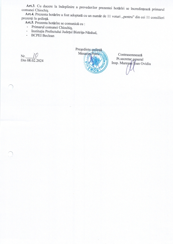 PRIMĂRIA COMUNEI CHIOCHIȘ. CONSILIUL LOCAL