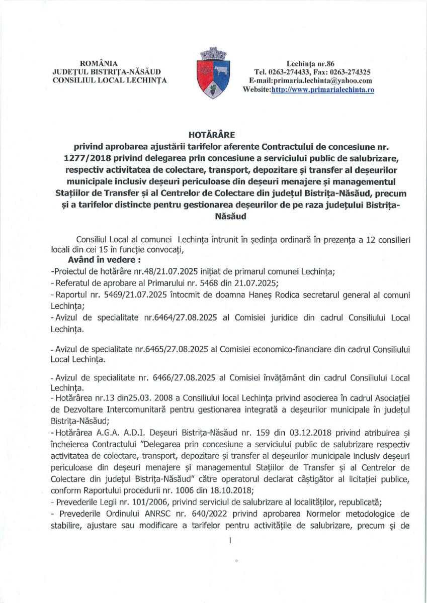 PRIMĂRIA COMUNEI LECHINȚA. CONSILIUL LOCAL